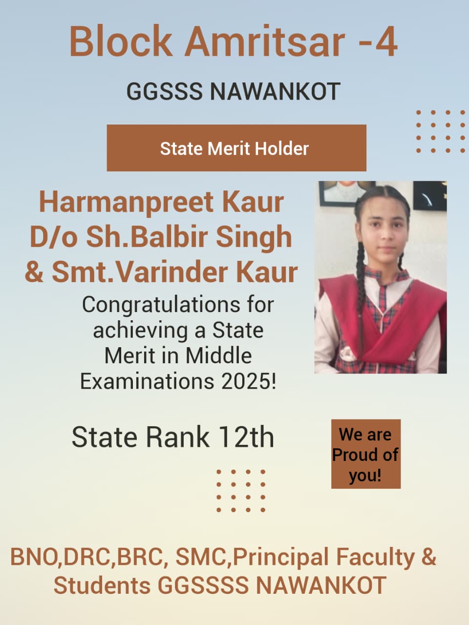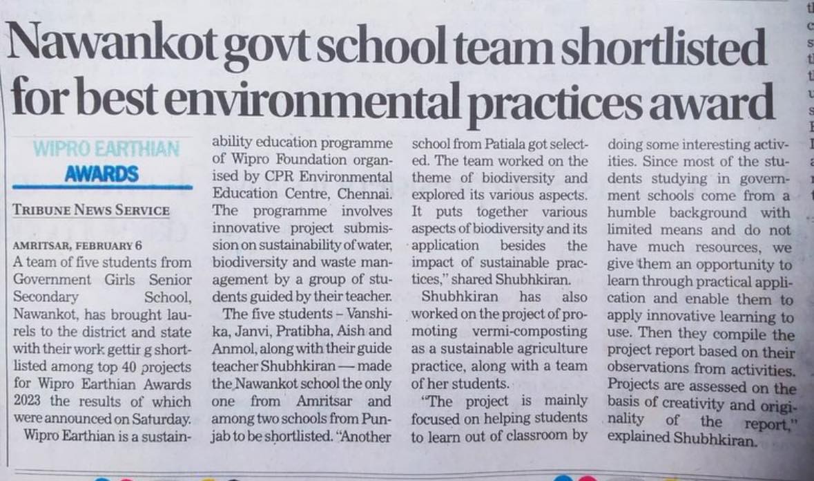 Our five students Vanshika, Janvi, Pratibha, Aish and Anmol along with their guide teacher Shubkiran – made the Nawankot school the only one from Amritsar to be shortlisted.