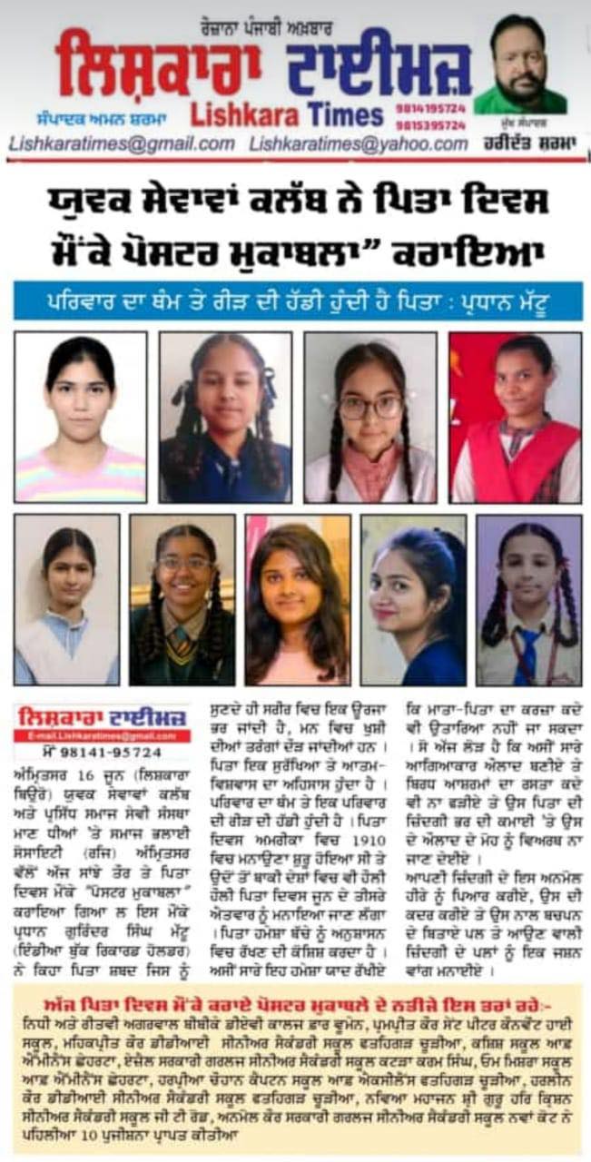 Anmol, one of our students, participated in the Father’s Day Poster Competition with enthusiasm, displaying originality and sincere expression. Anmol’s poster was a remarkable addition to the occasion because it skilfully conveyed the love and gratitude for fathers through brilliant colours and well-considered design.