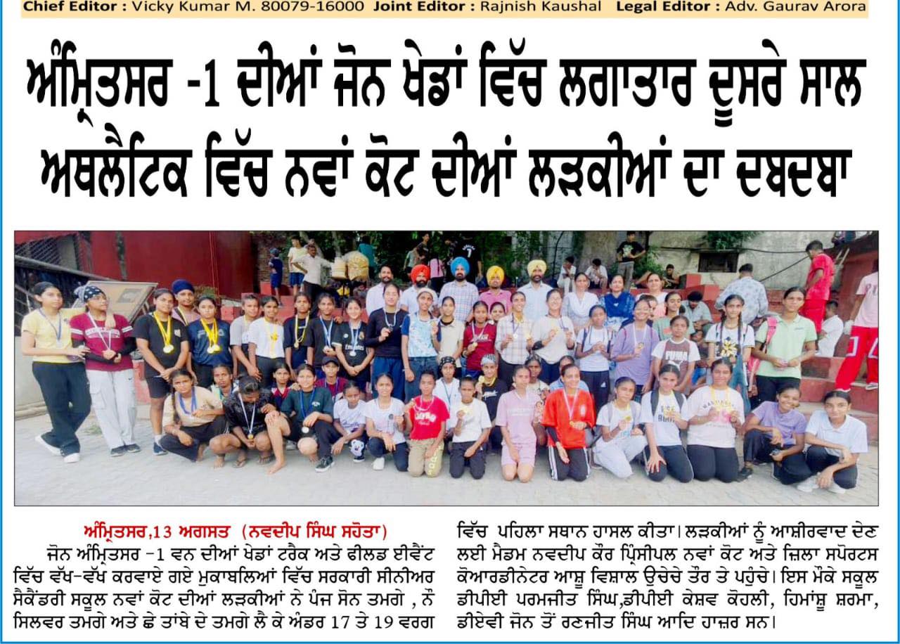 Our school wins over 5 Gold medals, 9 Silver medals and 6 Bronze medals under 17 to 19 age in Amritsar 1 jonal Games.